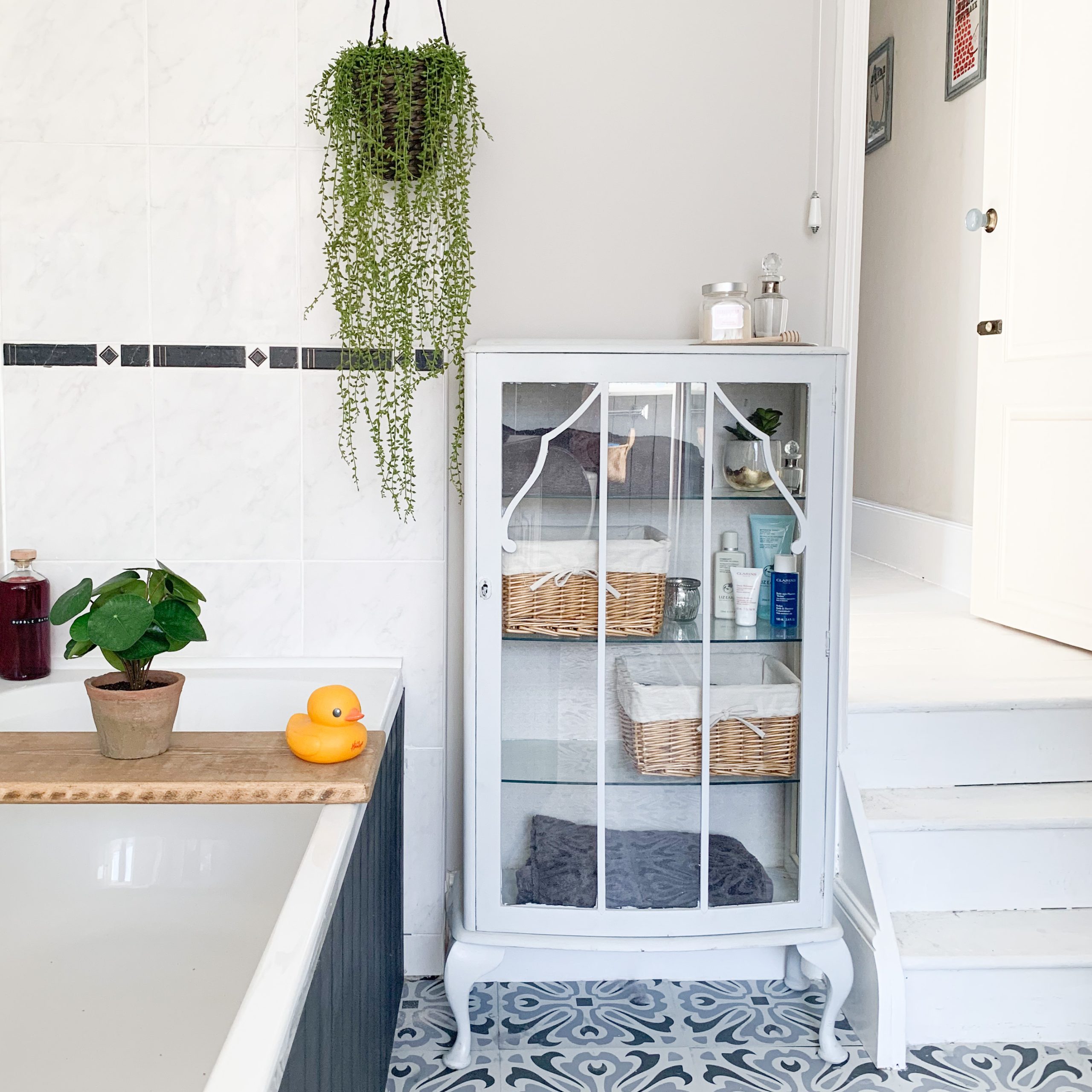 - The vintage cabinet in the bathroom